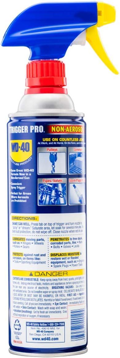Everything you need in a great multi-use lubricant: Strong, fast, durable and targeted. WD-40 Multi-Use Product original formula now offered in a Non-Aerosol Trigger Pro easy hold can