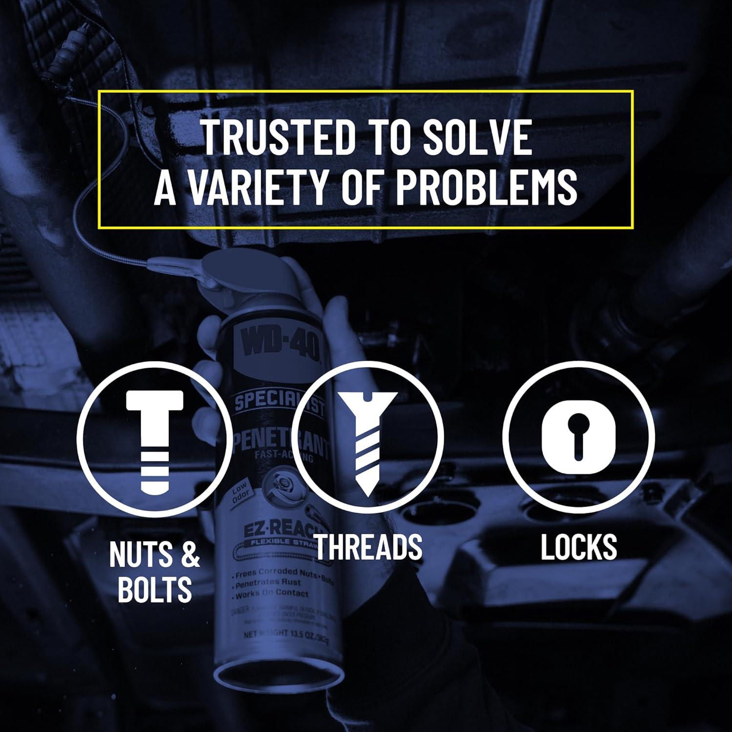 TOOLKIT IN A CAN: This multi-purpose lubricant is truly a toolkit in a can . Harness the power of WD-40 Multi-Use Product as you get every job done with ease. This formula has been around for over 65 years and has proven effective for over 2,000 different uses
